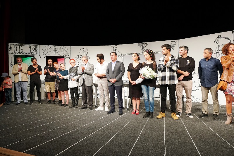 Bodrum Belediye Başkanı Ahmet Aras’ın da izlediği oyun sonunda konuşan Bodrum Belediyesi Şehir Tiyatrosu Genel Sanat Yönetmeni Hüseyin Akşen, şehir tiyatrosu tarafından sahnelenen “Kocasını Pişiren Kadın” ve “Uçurtmanın Kuyruğu” oyunlarının yönetmenleri Filiz Çevik Tan ve Ali Şahin ile her iki oyunun oyuncu ve teknik ekibini sahneye çağırdı.