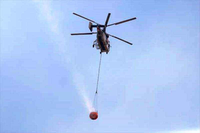 Yangını kontrol altında tutmak için ekipler, karadan gece boyunca çalışmasını sürdürdü. Sabahın ilk ışıklarıyla 2 ilçede de hava araçları çalışmalara yeniden başladı. Bölgeye sevk edilen 12 helikopter ve 3 uçak, yangınlara havadan müdahale ediyor.