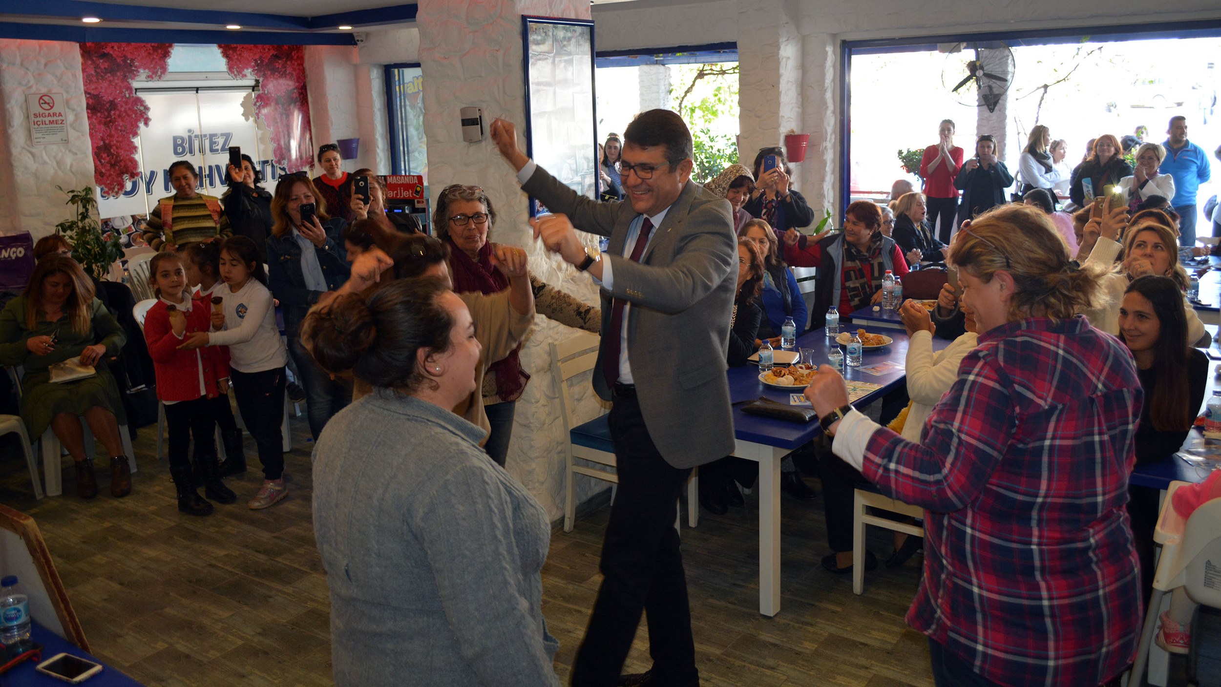 Mehmet Tosun, Bitez’in tüm sorunlarını bildiklerini, bununla ilgili tüm çalışmaları yapmak için hazır olduklarını belirterek, Bitezli kadınlardan destek istediği konuşmasından sonra kadınların yoğun alkışı arasında sözlerini tamamladı. Mehmet Tosun daha sonra yöresel sanatçı Mustafa Ergene’nin çaldığı şarkılar eşliğinde kadınlarla birlikte oyun oynadı.