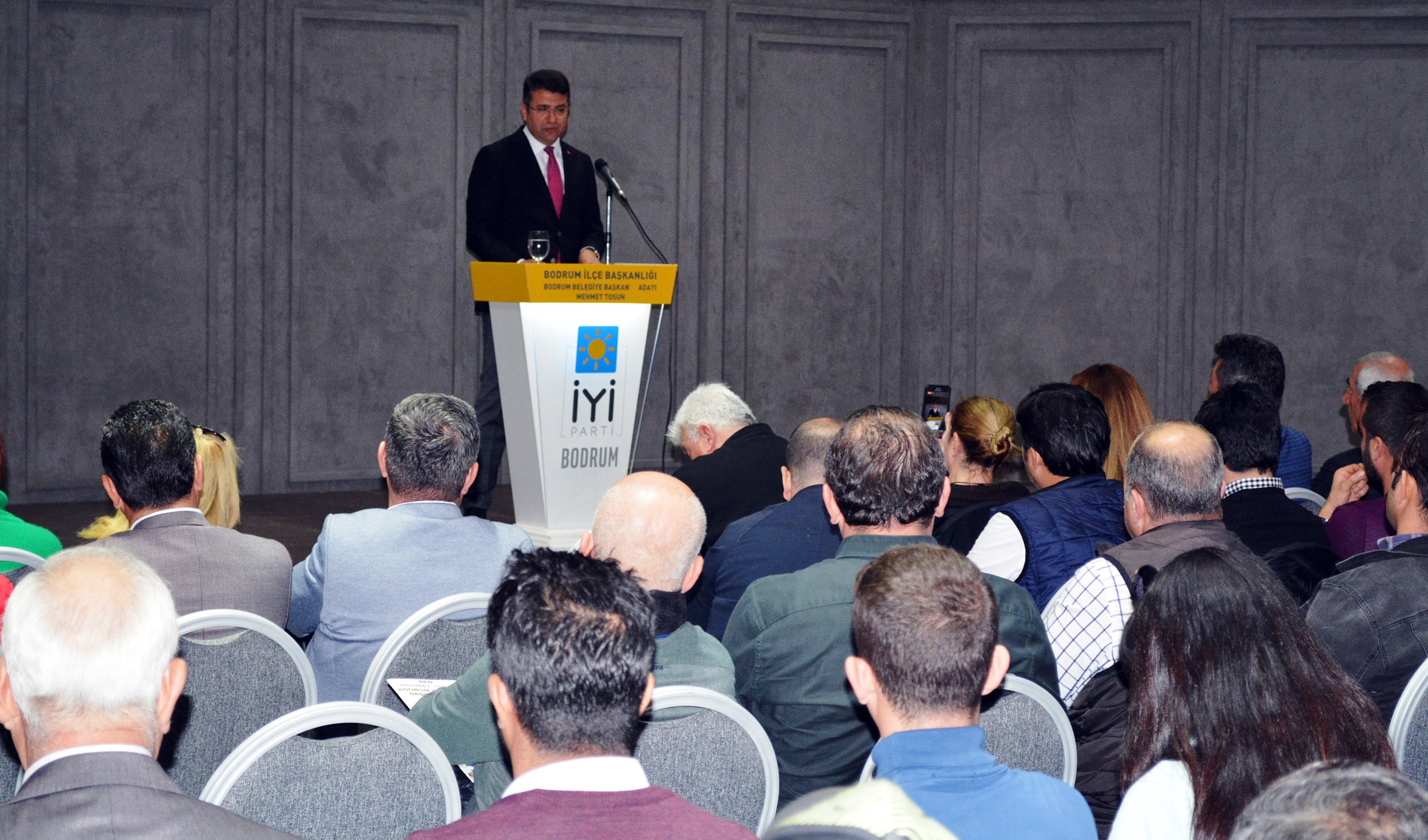 “Bu biriktirmiş olduğumuz sorunları da tarihin çöplüğünde geri bırakacağız. Bu azim ve kararlılıkla gece gündüz çalışıyoruz, proje üretiyoruz. Bugün aramızda, Bodrum’un bir dönem Kaymakamlığını yapmış, sonra Vali Yardımcılığı görevlerinde bulunmuş ve oradaki görevlerinde turizm konusunda görev ifa etmiş, aynı zamanda Turizm Tanıtma Genel Müdürlüğü yapmış Cumhur Güven Taşbaşı var. Bakın Ortakent Yahşi’mizin son dönem belediye başkanı, bir turizmci, İYİ Parti’nin kurucu başkanı benimde siyaset yapmaktan son derece keyif aldığım kardeşim diye söylediğim Mehmet Onur Şahbaz var. Yine Bodrum merkeze indiğimizde özellikle kış aylarında mekanlarını açık tutabilmek için canı gönülden uğraşan, bir çok sivil toplum kuruluşunda yönetici olarak görev alan, eğlence sektöründeki arkadaşımız Sayın Atilla Serttaş var. Bu sunumu yapan ve turizm konusunda bundan sonraki projelerimizde hep yanımızda olacak olan profesyonel olarak bu işi yapan Serdal Sarıl arkadaşımız var. Yine deniz turizmiyle uğraşan, günübirlik ve mavi yolculukta tekneleri olan Kumbahçeli Volkan Çiçek var. Gençlik kollarımızdan meclisimize aday olan, genç bir kızımız hanımefendi Yudum Ergün var. Saygıdeğer hemşehrilerim biz turizme o kadar önem veriyoruz ki Mehmet Tosun ve ekibindeki turizmci sayısı başka siyasi partide yok. Biz sizi önemsiyoruz, siz bizim için önemlisiniz.”