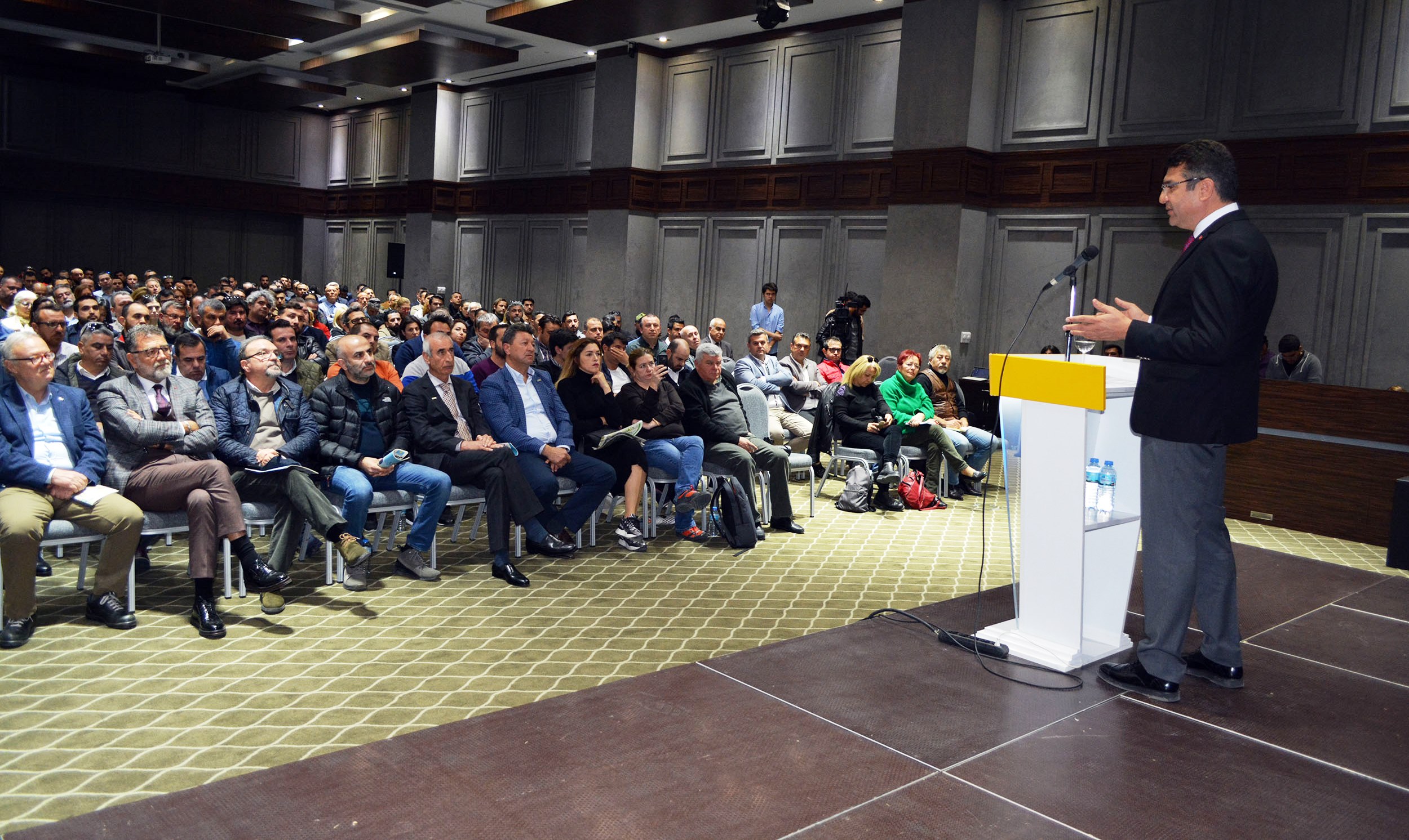 “Saygıdeğer hemşehrilerim, Bodrumumuz bir marka, bir dünya markası, buna bir itirazımızda yok ama isimle marka olmamızın, ismimizde dünya genelinde söz ettirmenin bir faydası yok. Rakiplerimiz var, alternatiflerimiz çoğalmaya başladı. Bodrum Güvercinlik’ten itibaren ilçeye girdiğimiz andan itibaren artık sıradanlaşan, yapılaşan, betonlaşan, sorunlarıyla birlikte, hormonlu bir şekilde büyüyen, altyapısı olmayan, sel felaketleriyle, çöp yangınlarıyla sık sık isminden söz ettiren bir yer haline geldi. Ben esasen bir arkadaşınız olarak siyasetçiliğin ötesinde bu tür haberleri gördüğümde üzülüyorum, burada doğmuş büyümüş bir arkadaşınız olarak inanın utanıyorum. Biz bu şartlarda bu şehirde, bu kentte sürdürülebilir bir yaşamı planlayamayacağımız gibi turizmi de yapamayız. Sorunlarımızla yüzleşmemiz lazım. Bugün şu salonda toplantı yaptığımız sırada Turgutreis Ali Hoca Burnu’ndan 10 bin metreküp atık suyumuz maalesef ve maalesef açıkta denize bırakılıyor. Bodrum’un birçok noktasında arıtma tesisi problemlerimiz var. Üç tarafı denizlerle çevrili olan Bodrum Yarımadamızda ve denizi bir kenara bıraktığınızda neredeyse hiçbir özelliği kalmayan Bodrum’umuzda denizi her gün kirletiyoruz. Biz farkında değiliz Turgutreis’teki olayı denizin altında olduğu için farkında değiliz. Karadan denize kirlilik yükü her geçen gün artıyor ve bunun farkında değiliz.”
