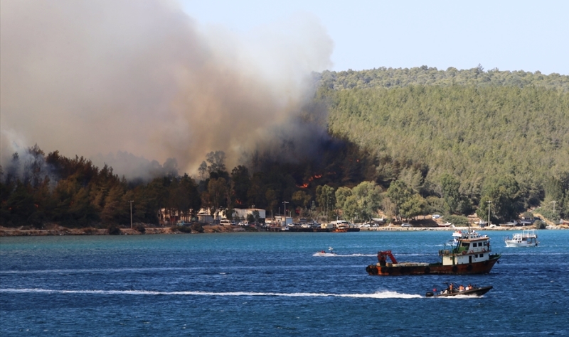 Muğla’nın Milas ilçesindeki ormanlık alanda çıkan yangın söndürülmeye çalışılıyor.