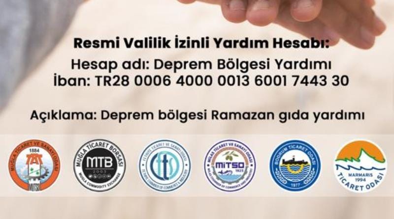 “11 Mart Cumartesi günü gerçekleşen Muğla Odaları ve Borsa ortak toplantısında bu yılki ramazan gıda kolilerimizi deprem bölgesine gönderme kararı aldık. Bununla ilgili yürüttüğümüz çalışmaya Muğla Valiliğimizin de oluru ile başlamış bulunmaktayız.