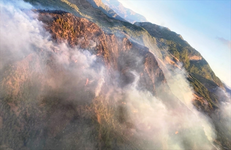 Ekipler, yangını söndürmek için yoğun çaba harcıyor.