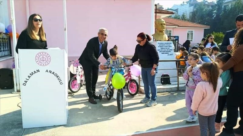 Dalaman’da yaşayan hayırsever vatandaşlar tarafından alınan 20 bisiklet, Dalaman Anaokulunda bulunan öğrencilere hediye edildi.
