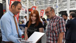 Konuşmaların ardından protokol üyeleri otobüslerle gelen öğrenci ve ailelerine karanfil vererek bir süre sohbet etti. Öğrenciler ve aileleri, otogarda kurulan stantları gezerek görevlilerden bilgi aldı.