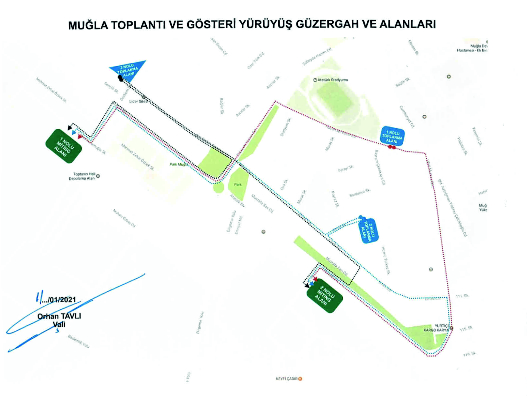 2021 Yılında kullanılacak olan “Gösteri ve Yürüyüş Güzergahları” Muğla Valiliğince belirlendi.