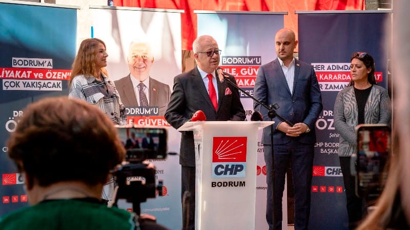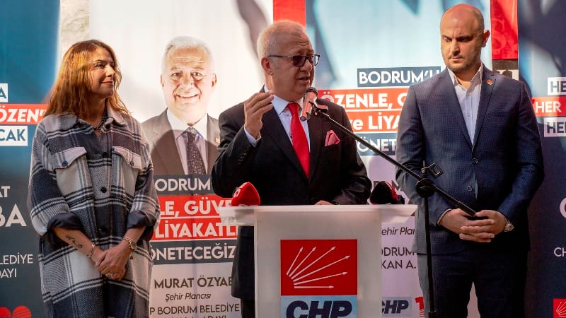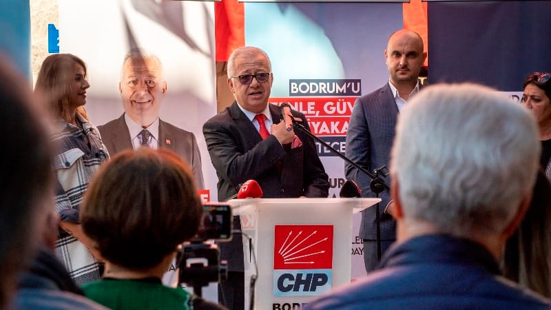 Cumhuriyet Halk Partisi Bodrum Belediye Başkan aday adayı Murat Özyaba, CHP İlçe Başkanlığı önünde kurulan kürsüden partililere hitap etti.