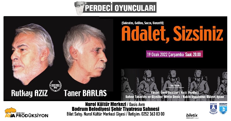 19 Ocak akşamı ise Nazım Hikmet Kültür ve Sanat Vakfı Başkanı Rutkay Aziz ve Yönetim Kurulu Üyesi ünlü oyuncu Taner Barlas’ın “Adalet Sizsiniz” adlı oyunu Bodrum halkıyla buluşacak. Yenilenen fuayesi ve sahnesi ile Nurol Kültür Merkezi Bodrum Belediyesi Şehir Tiyatrosu Sahnesi’nde gerçekleşecek tek perdelik oyun Ümit Denizer tarafından kaleme alındı.