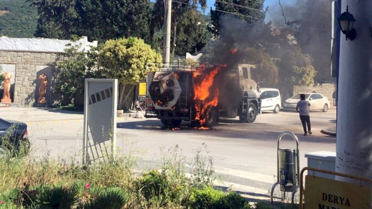 Bodrum Belediyesinin dezenfekte aracı yanarak kullanılamaz hale geldi.