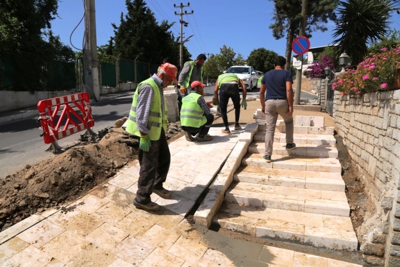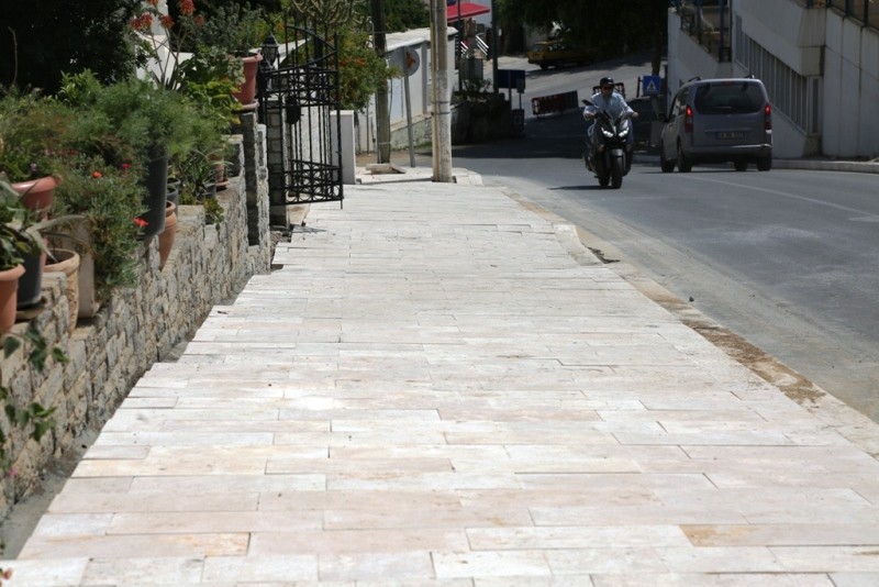 Eski kaldırımların sökülmesiyle başlayan çalışmalar sonrasında kaldırımlar traverten ile kaplanmaya başlandı. Bodrum’un yerel değerlerinden tarihi yel değirmenlerine çıkan ve turistlerin de sıkça kullandığı Osman Nuri Bilgin Caddesi’ndeki çalışmalar kapsamında 5 bin 200m2 traverten kaldırım döşemesi, 3 bin 900 metre traverten bordür taşı döşemesi ve bin 300 metre engelli yürüyüş yolu yapılacak. Çalışmaların mayıs ayı sonunda tamamlanması planlanıyor. Belediye Fen İşleri ekipleri, Bodrum Yarımadası genelinde kaldırım bakım ve onarım faaliyetlerini, turizm yoğunluklu bölgelerden başlamak üzere belirli bir program dahilinde sürdürecek.