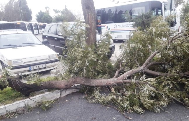 Bodrum’da bugün sabah saatlerinden itibaren etkili olan ve akşam saatlerinde hızını arttıran rüzgar, hayatı olumsuz etkiledi. Zaman zaman saatte 75 kilometre hıza ulaşan rüzgar nedeniyle Barlar Sokağı’ndaki bir binanın terasında bulunan, ahşap ve demir kaplı çatı malzemesi uçtu. Uçan malzemenin bir kısmı, 3D sinema olarak kullanılan binanın pergolasının üzerine, diğer kısmı da, arka sokaktaki polis lojmanlarının bahçesindeki, bir polis memuruna ait otomobilin üzerine düştü. Otomobilde hasar meydana gelirken, her iki parçanın uçtuğu yerde vatandaşların olmaması nedeniyle, şans eseri yaralanan olmadı.
