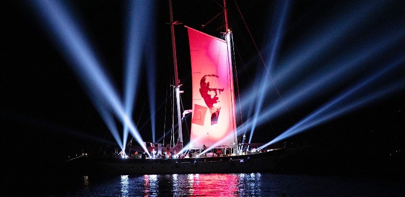 Bodrum Belediye Başkan Yardımcısı Emel Çakaloğlu ve Belediye birim müdürlerinin ellerinde Türk Bayrakları ile katıldığı sembolik yolculuk sosyal medyadan canlı olarak yayınlanırken, yüzlerce vatandaş evlerinin balkonlarına ve bahçelerine çıkarak hep bir ağızdan tekneden yükselen marşlara eşlik etti. 36 metrelik yelkenlinin, dev Atatürk bayrağı ile Bodrum açıklarında süzülüşü, izleyenlere duygulu anlar yaşattı.