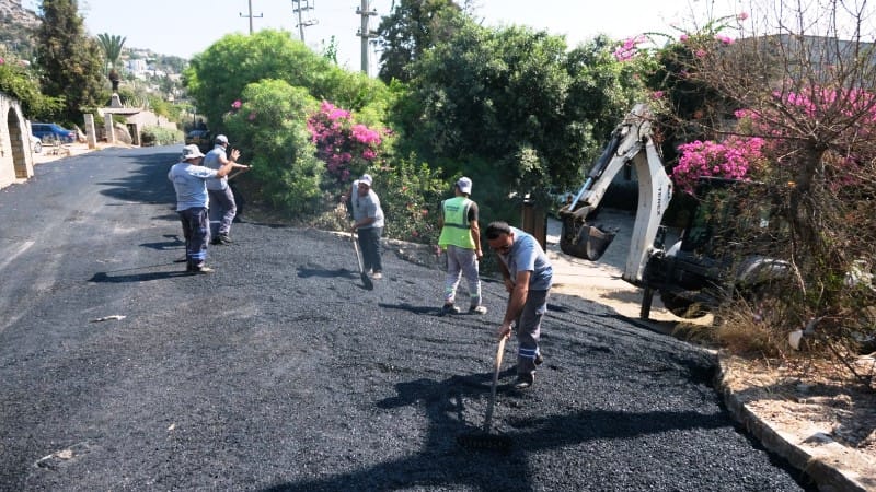 Bodrum Belediyesi ekipleri, altyapı çalışmaları tamamlanan cadde ve sokaklarda üst yapı çalışmalarına devam ediyor