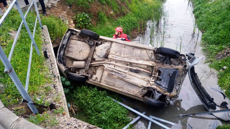 Çarpışmanın etkisiyle Ertürk’ün kullandığı otomobil yol kenarındaki su kanalına devrildi.