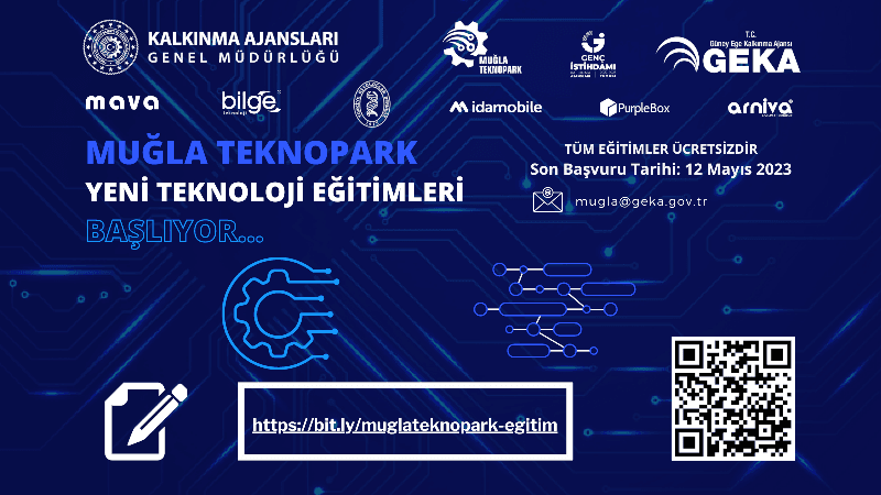 Başvuruların 12 Mayıs 2023 tarihinde son bulacağı “Muğla Teknopark Yeni Teknoloji Eğitimleri” programı kapsamında; Muğla Teknopark firmaları tarafından React JS, Node.js Programlama Dilleri, PC ile Endüstriyel Otomasyon, Fonksiyonel Gıda Üretim Teknolojisi, Flutter ile Mobil Uygulama Geliştirme, Cloud Computing & Cloud Security ve RESTful Web Services konularında ücretsiz eğitimler verilecek.
