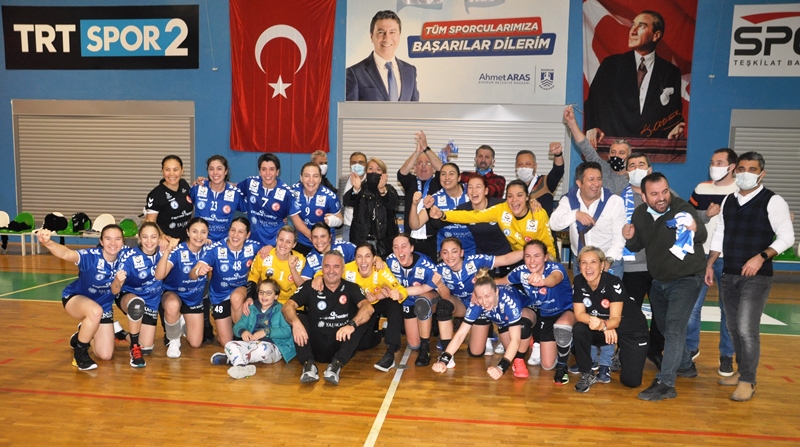 Türkiye Kadınlar Hentbol Süper Liginin derbi karşılaşmasını kazanan “Denizin Kızları” adeta şampiyonluk kutlaması yaptı.