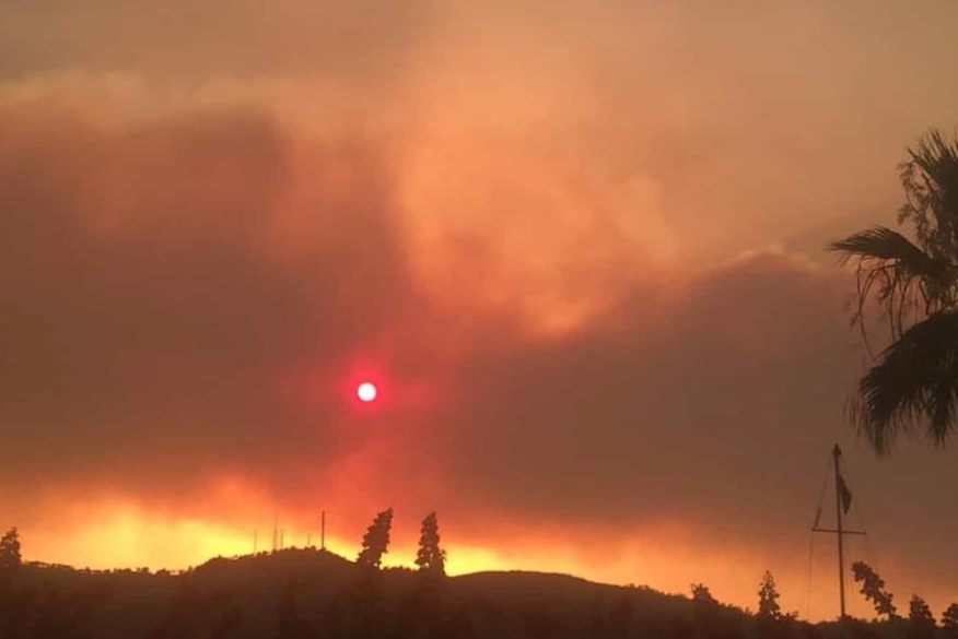 Dalaman’dan öğleden sonra başlayan yangın söndürülemiyor. Şu ana kadar binlerce hektar orman yok oldu. Göcek’e doğru ilerleyen yangın nedeniyle Muğla genelinde gökyüzünü kara bulutlar kapladı. Gökyüzünü kaplayan kara bulutlar nedeniyle güneş bile görünmüyor. Dalaman’da başlayan orman yangını söndürülemiyor.