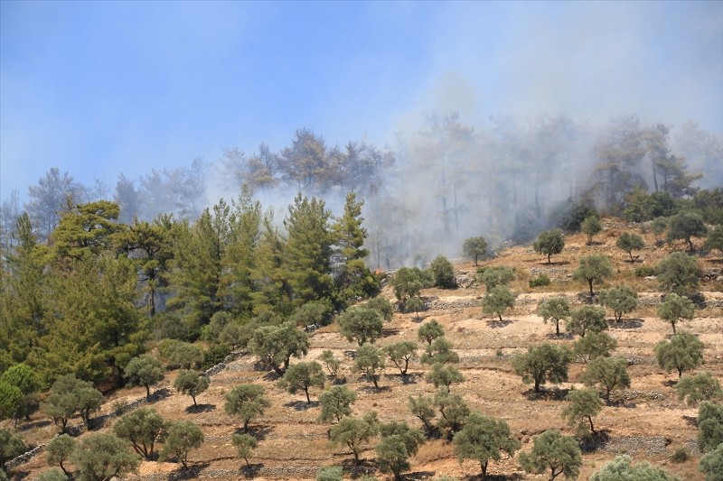 Milas ilçesinde zeytinlik alanda başlayan ardından ormana sıçrayan yangın kontrol altına alındı.